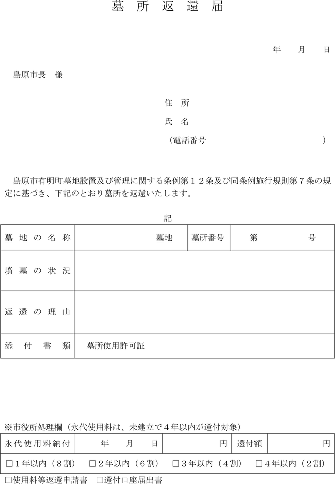 第7条 条例第12条の規定により、墓所を返還しようとするときは、墓所返還届(