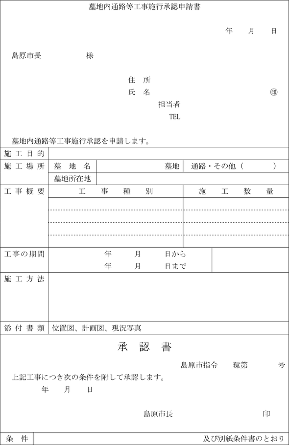 2 使用者の負担において墓地内通路等の工事をしようとするときは、墓地内通路等工事施工承認申請書(