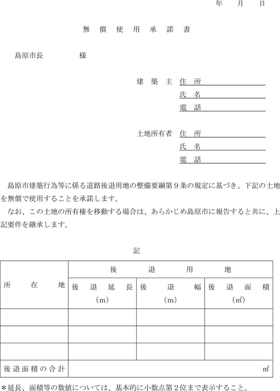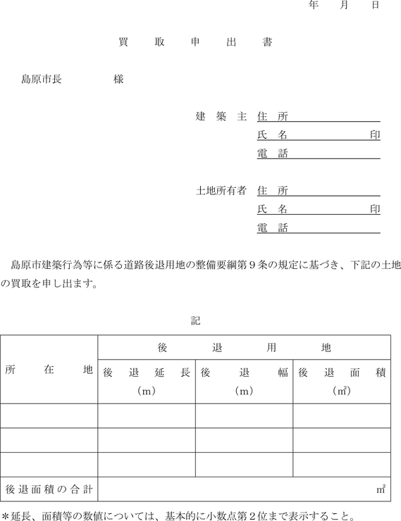 ○島原市建築行為等に係る道路後退用地の整備要綱