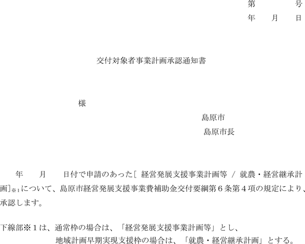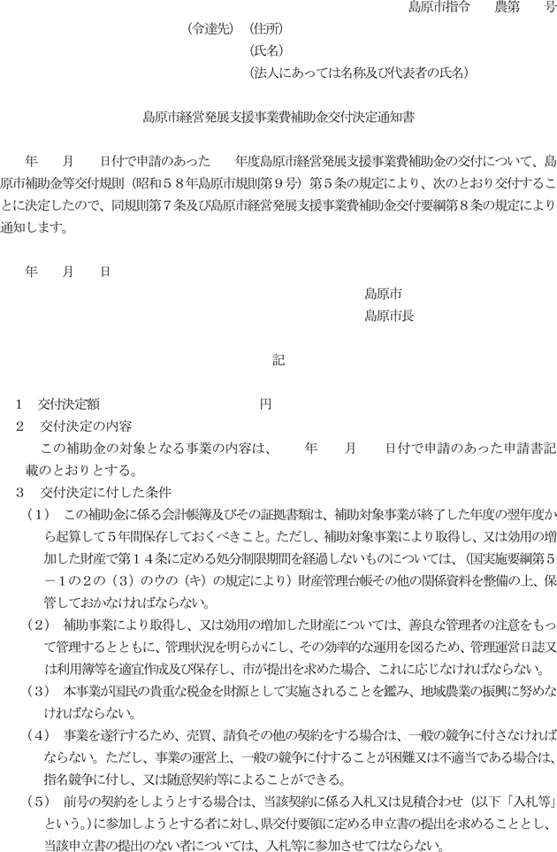 第8条 市は、交付申請が提出された場合は、申請内容について審査を行い、適当と認めた場合は、島原市経営発展支援事業費補助金交付決定通知書(