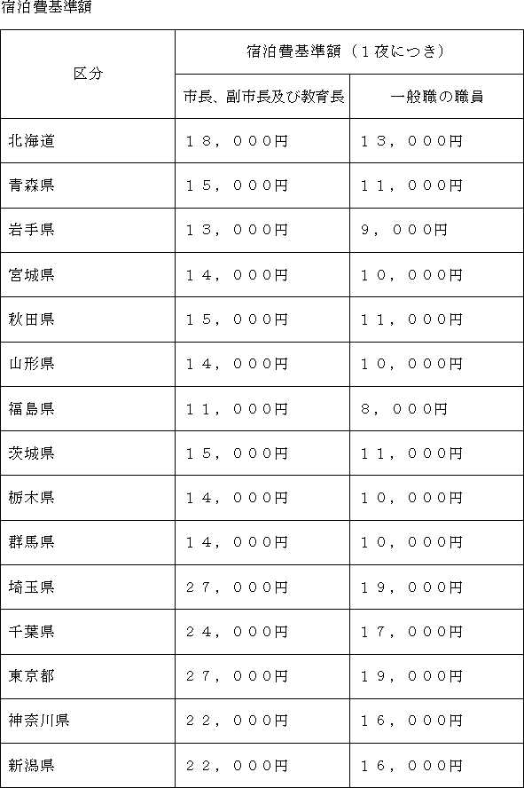 (宿泊費基準額等)