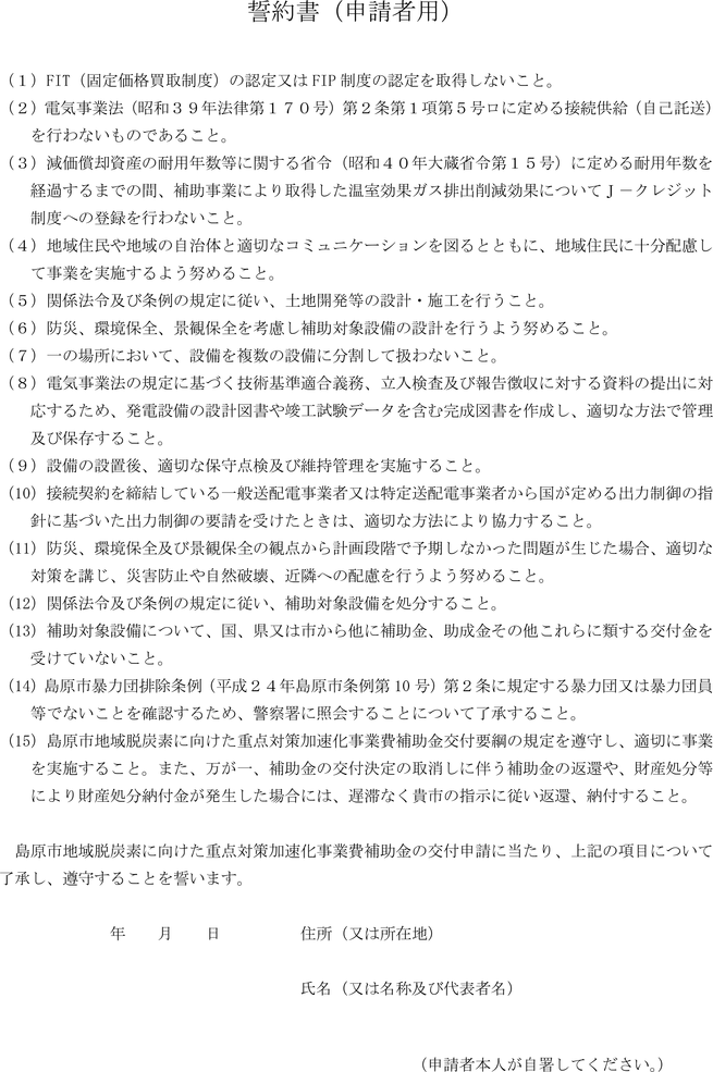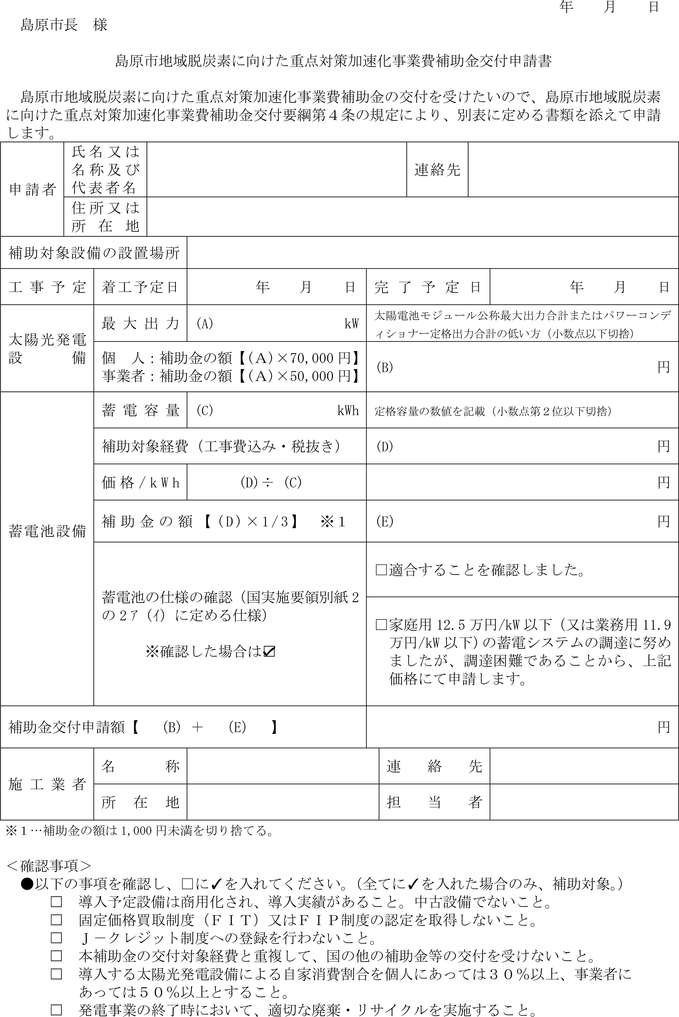 第4条 補助金の交付の申請をしようとする者は、島原市地域脱炭素に向けた重点対策加速化事業費補助金交付申請書(