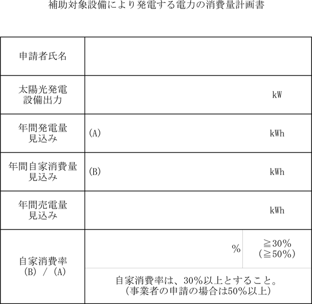 添付書類 | 1 申請書の確認書類 (1)個人 運転免許証の写し、住民票の写し等 (2)事業者 (法人)登記事項証明書の写し (個人事業者)営業許可書、開業届出書、確定申告書の写し等 2 市税の滞納のない証明書 3 補助対象設備により発電する電力の消費量計画書(様式第2号) 4 補助対象事業費内訳書(様式第3号) 5 誓約書(様式第4号) 6 見積書(補助対象事業費の内訳が確認できるもの) 7 導入予定設備の概要が分かる書類(カタログ等) 8 機器配置図 9 委任状(代理人が申請する場合) 10 その他市長が必要と認めるもの |
