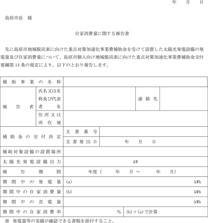実績報告書 | 様式 | 島原市地域脱炭素に向けた重点対策加速化事業費補助金実績報告書(様式第10号) |