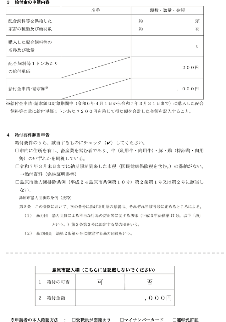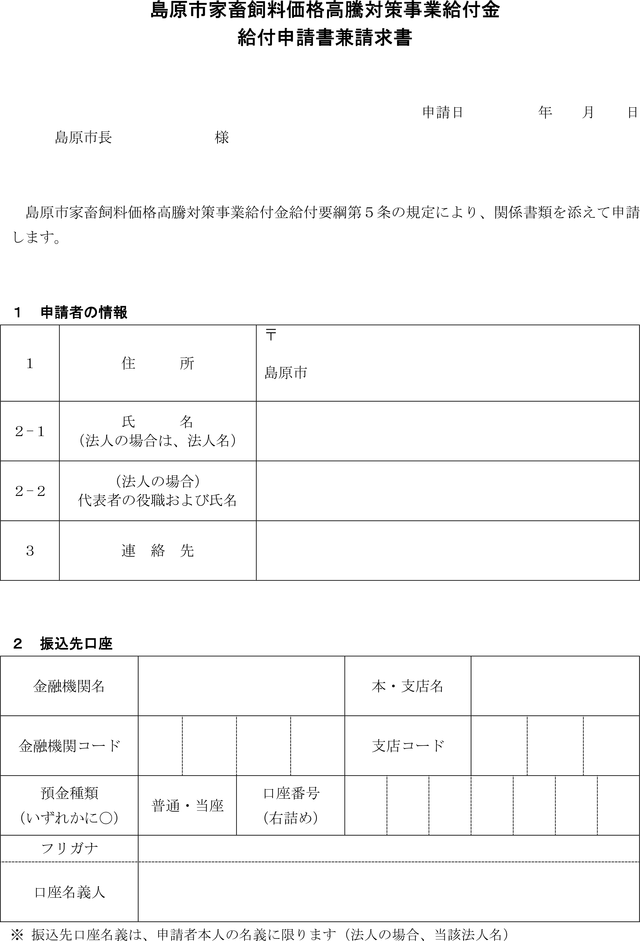 第5条 給付金の給付を受けようとする者(以下「申請者」という。)は、島原市優良肉用子牛生産推進緊急対策事業給付金給付申請書兼請求書(